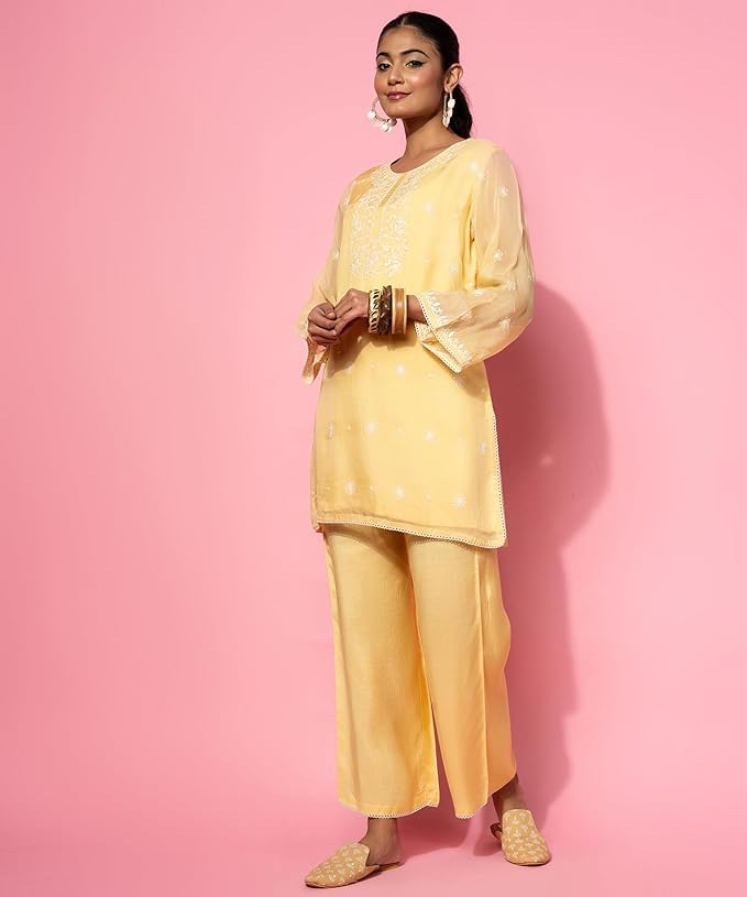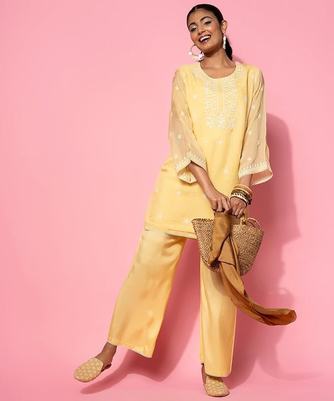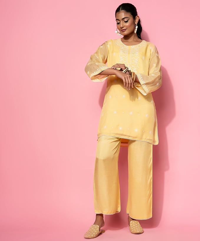 INDO ERA Women's Embroidered Viscose A-Line Kurta Pant Set