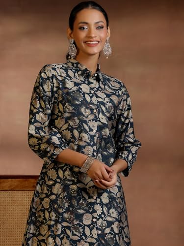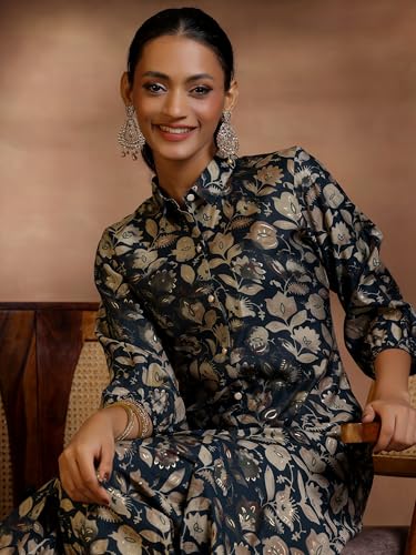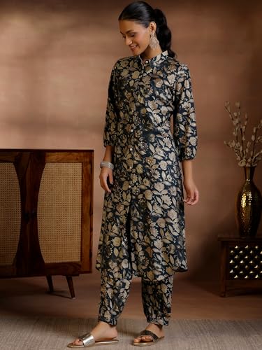 Libas Purple Printed Cotton Straight Kurta with Trousers