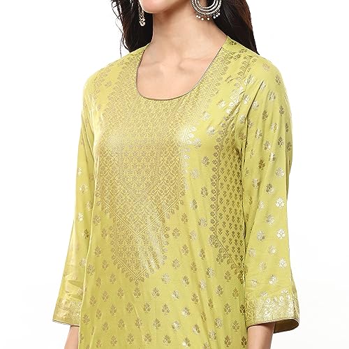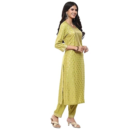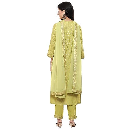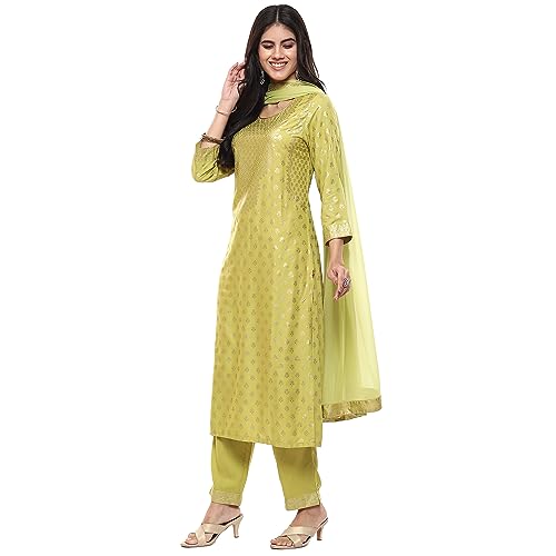 INDO ERA Women's Silk Blend Floral Embroidered A-line Kurta Palazzo with Dupatta Set