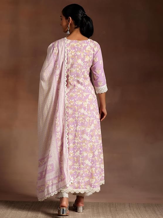 Miss Ethnik Women's Purple Faux Georgette Stitched Top with Stitched Faux Georgette Bottom and Faux Georgette Dupatta Full Sleeve Embroidered Straight Kurta