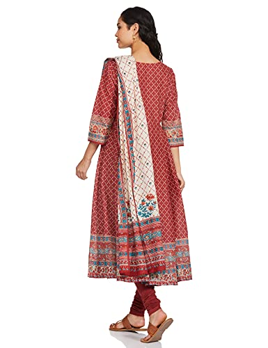 Libas Mauve Printed Silk Blend Anarkali Kurta with Palazzos & Dupatta