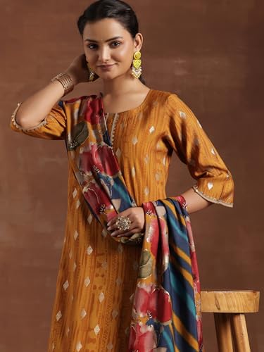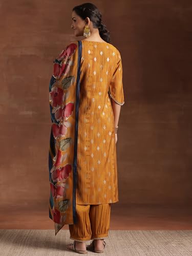 Libas Turquoise Blue Printed Silk Blend Straight Kurta With Trousers & Dupatta
