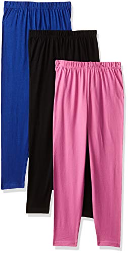 Jain Traders Girl's Cotton Maroon, Beige, Green Solid Leggings Set of 3