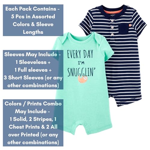 TuddyBuddy 100% Organic Cotton Multi Color Sleepsuit/Onesie/Footed Romper for Baby Boy & Baby Girl