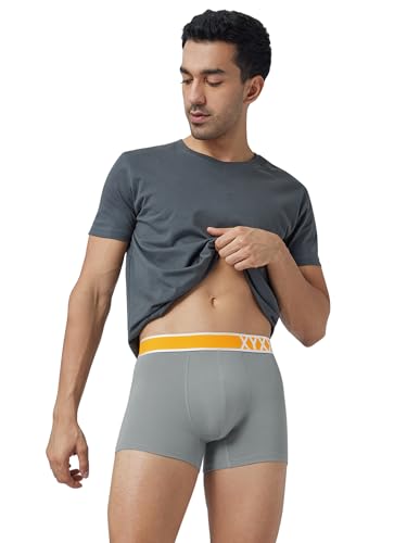 XYXX Men's Uno Melange Micromodal Regular Fit Antimicrobial Trunks with No Marks Waistband (Pack of 3)