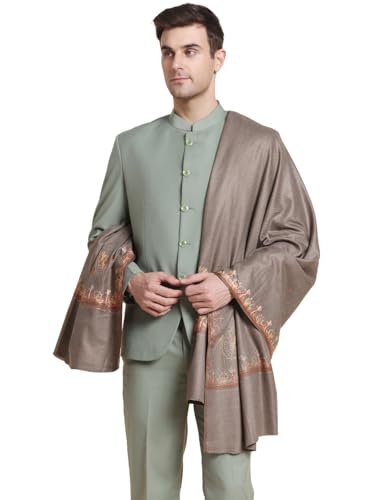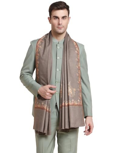Pashmoda Men Shalimar Kaani Stole, Authentic Kashmiri Luxury Pashmina Style Shawl, Stole, Small Size Gents Lohi, Size 28x80 Inches.
