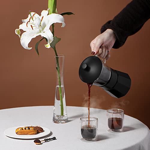 Espresso Maker, Aluminum Coffee Maker, 150ML for Kitchen Home(Black)