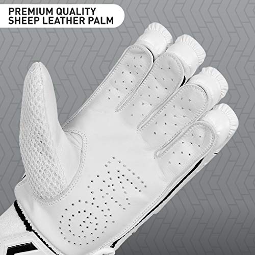 SLUGGER Cricket GO Youth Batting Gloves Right Handed Lightweight - PVC Material, White Leather - Enhanced Grip and Protection for Superior Performance | White & Black